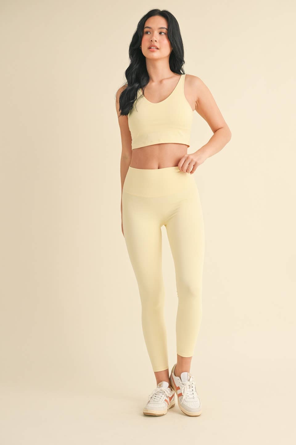 Quick-drying with four-way stretch. Weightless, breathable brushed soft fabric with removable bra pads.