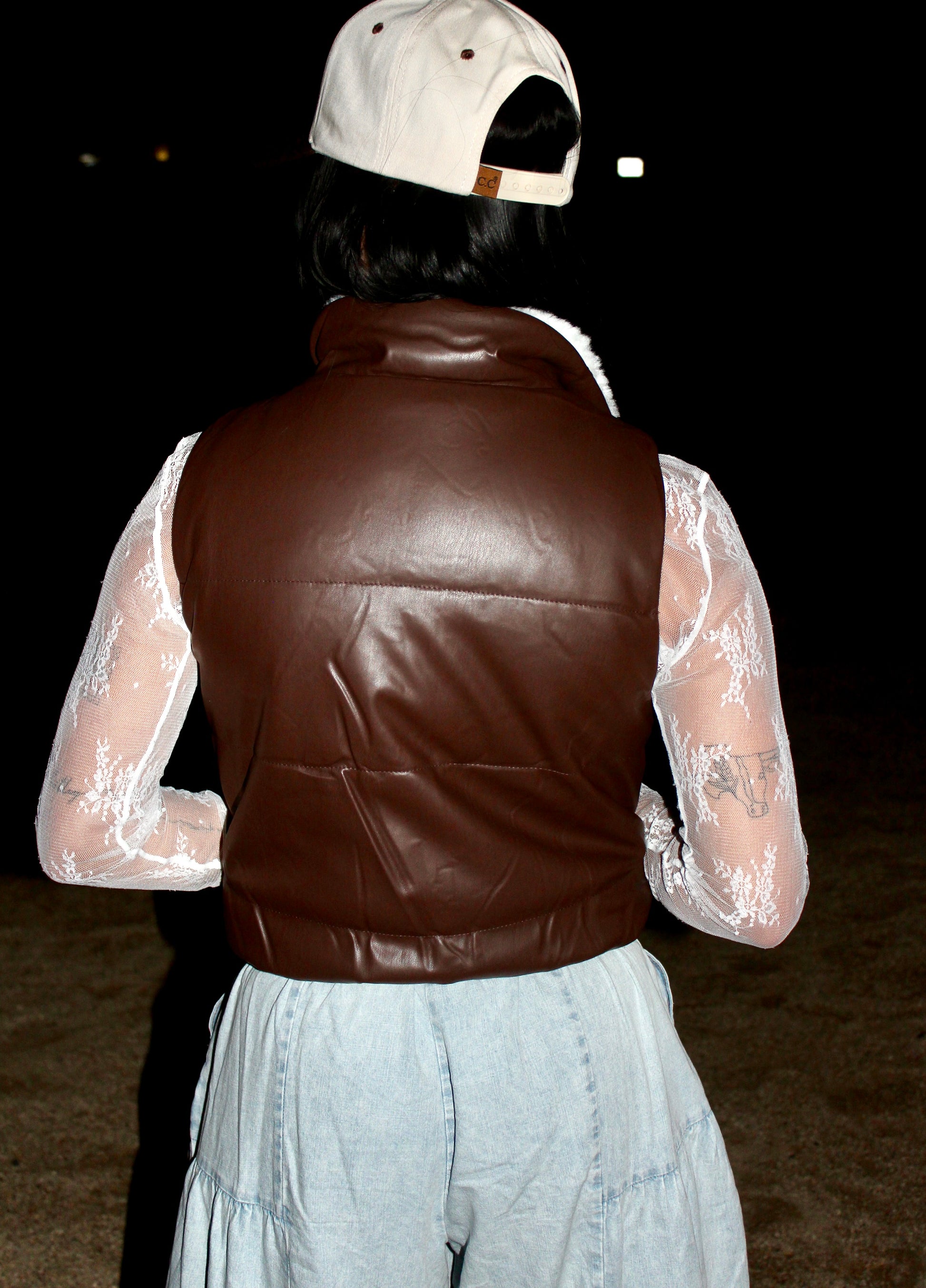 Faux Leather Sherpa Puffer Vest