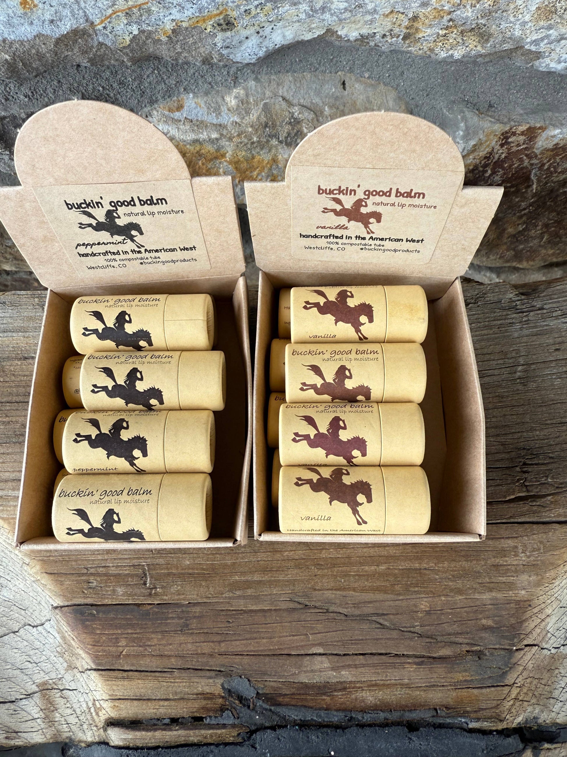 Buckin' good balm is hand poured in the American West, design inspiration from my two horses and thoughtfully packaged in 100% compostable cardboard tube.
